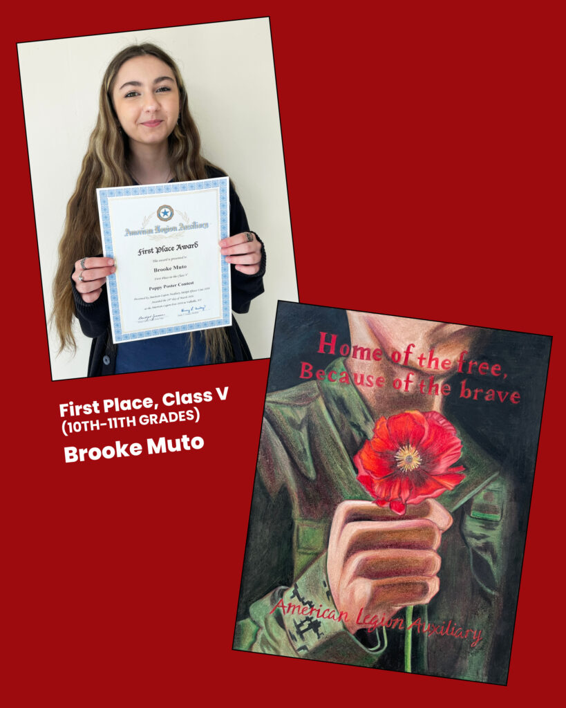 She also noted thatKeitu, Brooke and Layla are the latest chapter of Maria Regina Visual Arts Program artists shining in the Valhalla Post 1038 Poppy Poster Contests.  Five students were honored two years ago including Ariela Franco (Class of ’24) of hometown whose poster won the top prize both in Valhalla and New York State, earning her the honor of competing in the American Legion’s national poster contest.