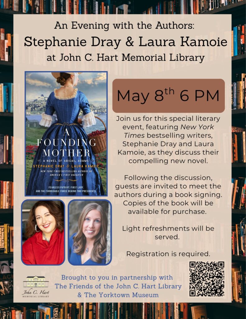 “This promises to be a truly fascinating literary evening,” said Yvonne Cech, Library Director. “Stephanie Dray and Laura Kamoie have a wonderful ability to bring history and its most compelling figures to life. We’re thrilled to invite the community to engage with their work and celebrate the enduring legacy of Abigail Adams.”